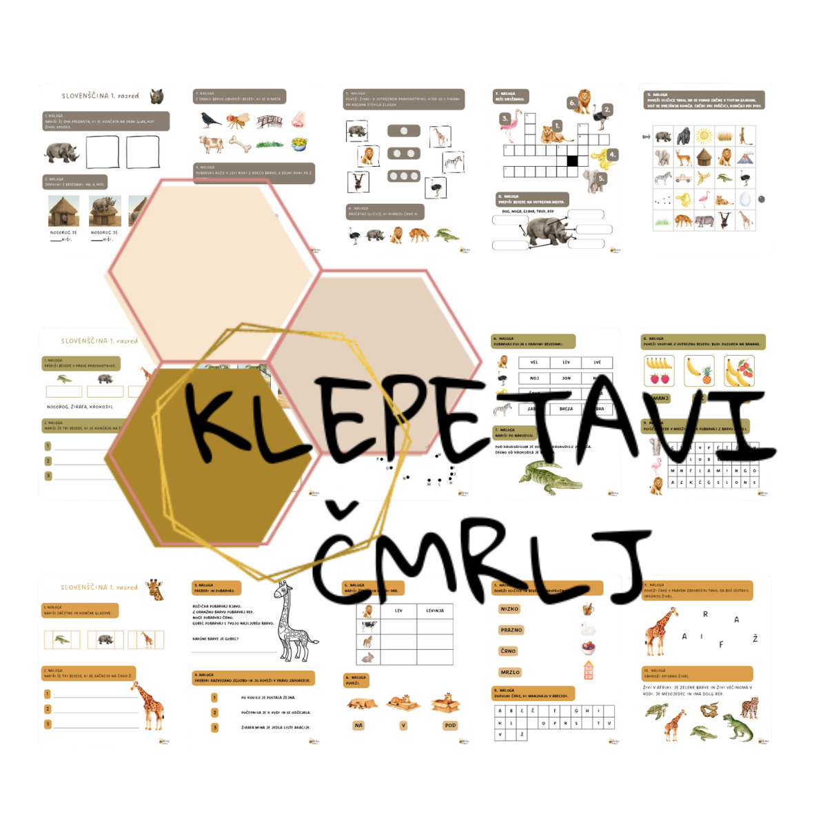 3 preizkusi znanja iz slovenščine za 1. razred. Vsebujejo naloge iz celotnega učnega načrta in so primerni za pregled celoletnega znanja.